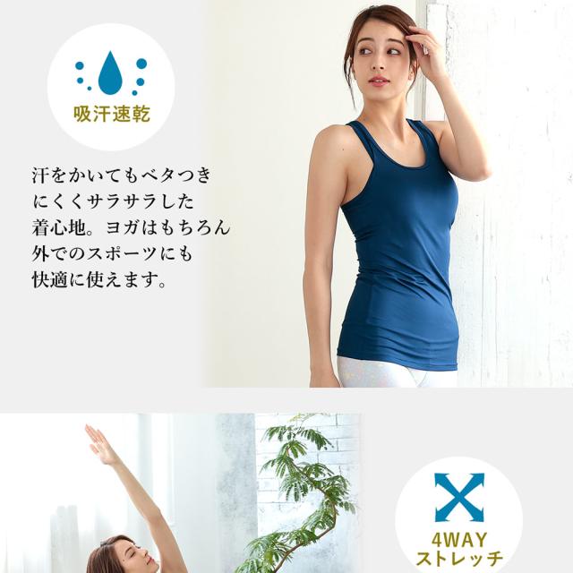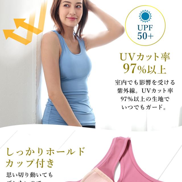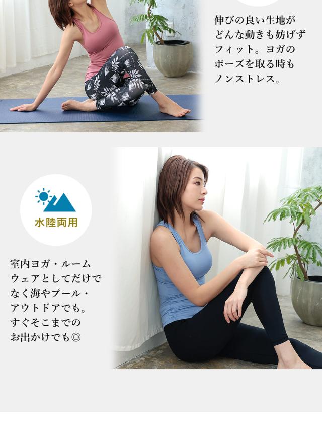 Koa ヨガウェア タンクトップ レディース カップ付き ルームウェア ジムウェア UVカット UPF50+ 体型カバー 水陸両用 吸汗速乾