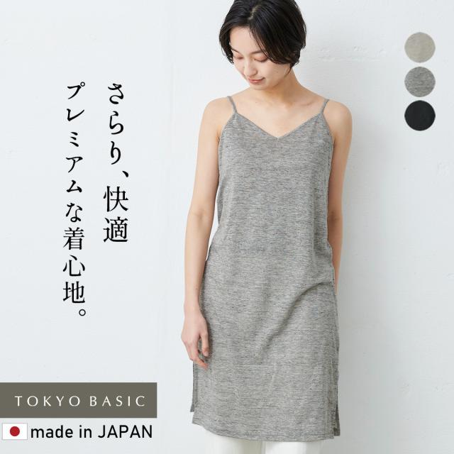 プレミアムリネン100% キャミソールワンピース 日本製 / ペチコート ワンピース 涼しい ペチワンピ 麻100% 黒 浴衣下 着物下 インナー 透け防止 スリップ 婦人用 肌着 速乾 抗菌 天然素材 春 夏 秋 下着 ベージュ 生成り グレー ブラック 黒 M L LL