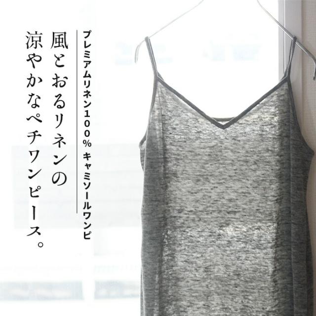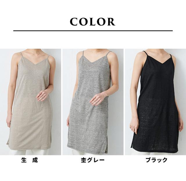 ペチコート ワンピース 涼しい リネン100% キャミソール 日本製 ペチワンピ 麻100% 黒 インナー 透け防止 スリップ 婦人用 肌着 速乾 天然素材 夏 透けない 大きいサイズ ブラック 生成 ベージュ グレー M L LL 2L