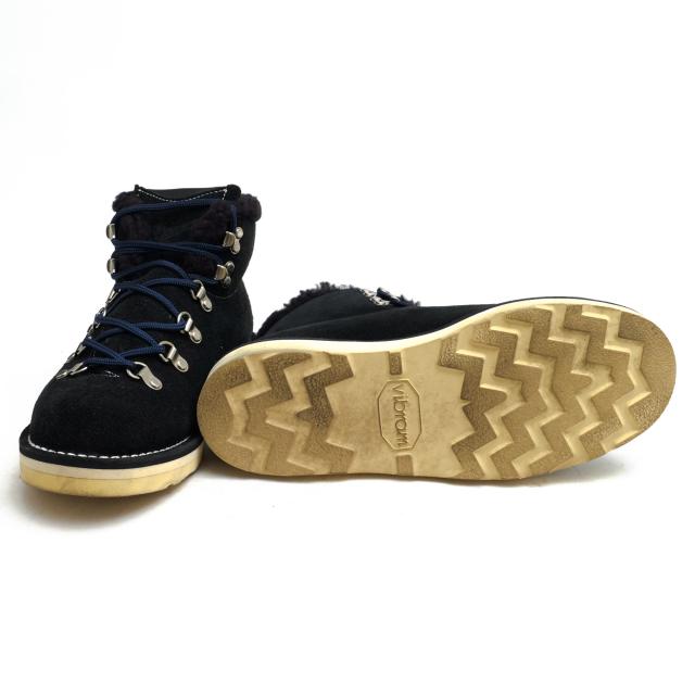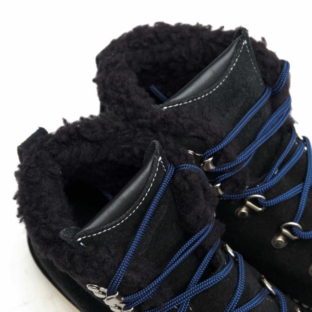 Ron hermanとBedwinのレーベルである「RHC」とコラボしたマウンテンブーツモデル。D環が特徴的なMOUNTAIN RIDGE HIGHをベースに、カウハイドスエードのライニングにはボアを合わせています。シューレースはRHCのカラーであるブルー、ステッチにはホワイトを効かせ、タン裏にはRHCの織りネームが縫い付けられています。