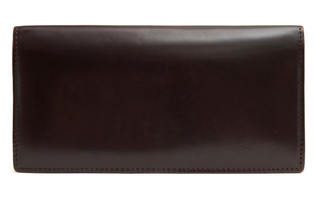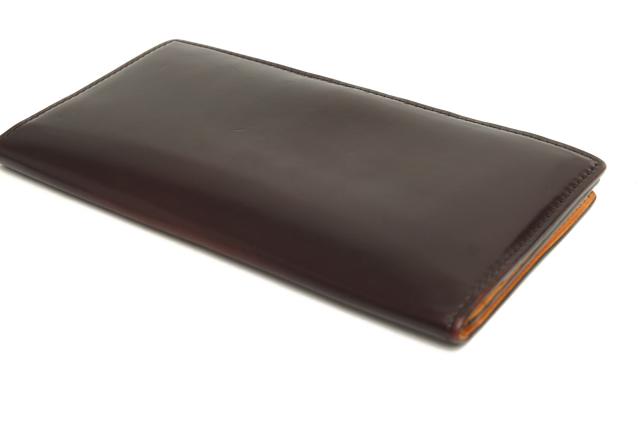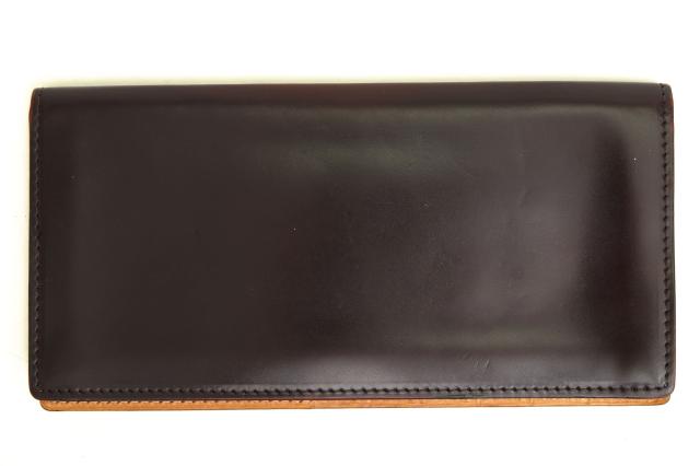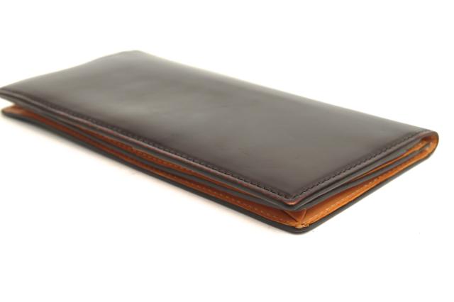 「キングオブレザー」「革のダイヤモンド」と言われているコードバンを使用した薄マチタイプの札入れ。兵庫県にある新喜皮革というタンナー(革を製造する会社)のコードバンを使用し、ブライドルレザーに用いられるロウ漬けが施された特別な仕様。新喜皮革60年以上の歴史ある世界屈指の馬革タンナーであり、コードバンを製造できる日本唯一の会社です。内部にも欧州産ヌメ革が用いられており、こだわりを感じます。
