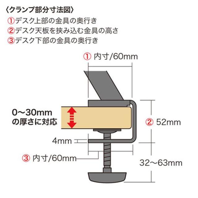 ■デスク下部の金具の奥行き:内寸/60mm