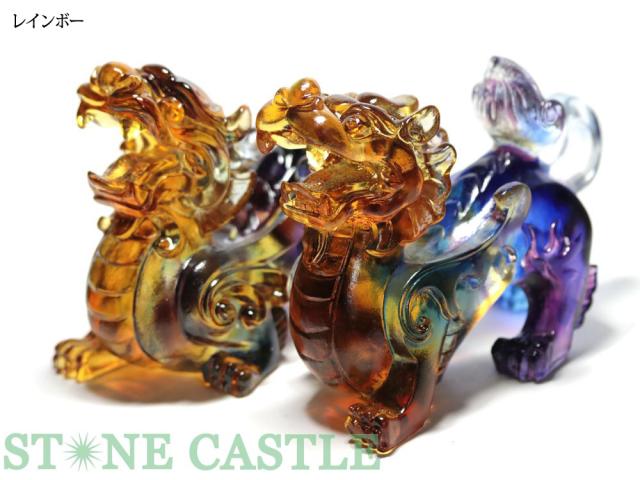 ☆高品質☆【天然石 彫刻置物】招財の神獣・貔貅(ひきゅう) 瑠璃ガラス (ペアセット) 大