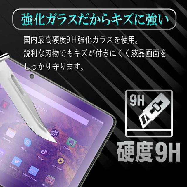 Fire HD 10 2021/Fire HD 10 Plus 2021 ブルーライトカット強化ガラス 液晶保護フィルム ガラスフィルム 耐指紋 撥油性 表面硬度 9H/0.3mmのガラスを採用 2.5D ラウンドエッジ加工 ドコモ ディタブ コンパクト ディ42A ガラスフィルム