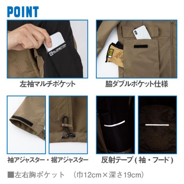 基本的なワークの機能は備えつつ、フーディータイプで