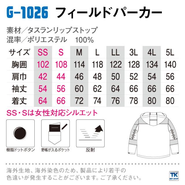 G1026 フィールドパーカー パーカー ダブルポケット ジャケット CO-COS コーコス 作業服 作業着