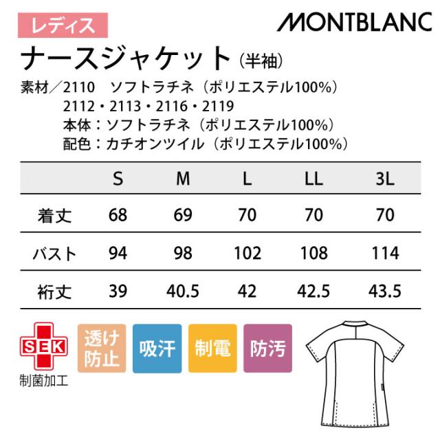 住商モンブラン レディース ナースジャケット 半袖 女性 動きやすい 医療用 白衣 看護師 ナース 介護士 理学療法士 リハビリ 病院 デンタルクリニック 歯科衛生士 ジャケット sm-73-2110