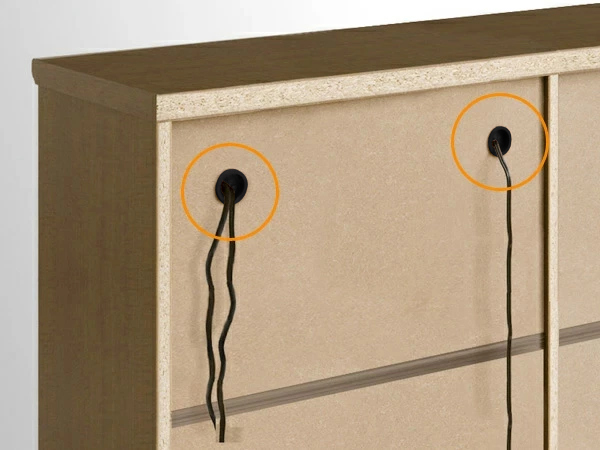 裏板に配線用の穴を加工します。電化製品やAV機器を設置したい方におすすめします。