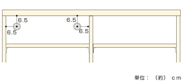※裏板1枚につき、2か所を加工。穴位置は裏板の端より6.5cmの位置。