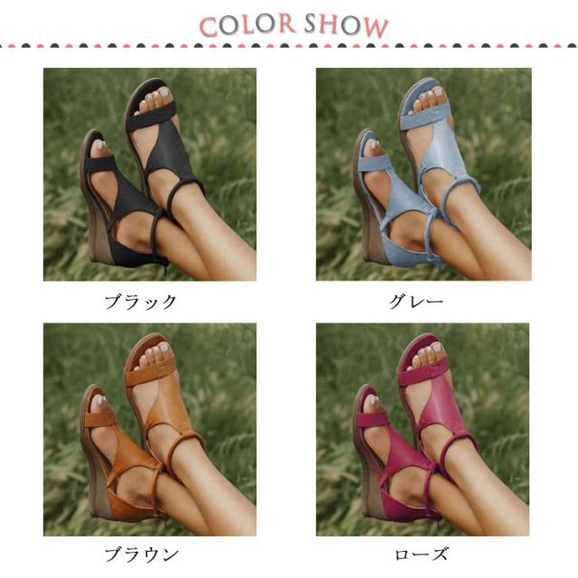 | 履くだけで足が細く見える♪ 足首から甲にかけて、優しくフィットし、脱げない歩きやすいおしゃれグラディエーターサンダル。 低反発のインソールなので、長時間履いても疲れにくく、痛くない。 忙しい時でも履き脱ぎやすいバックジッパー付きなのでとても楽チン。 | |