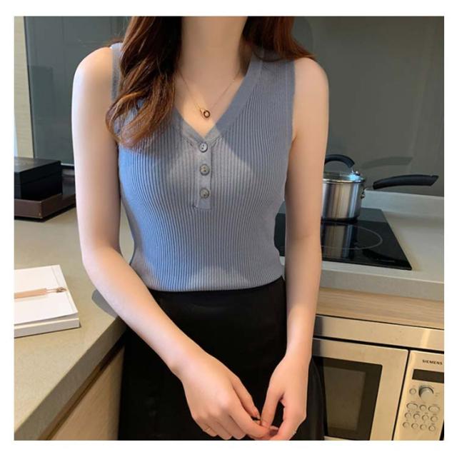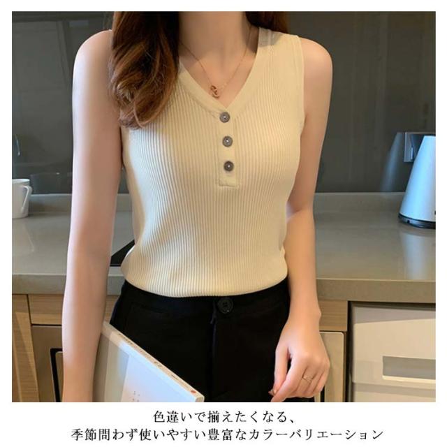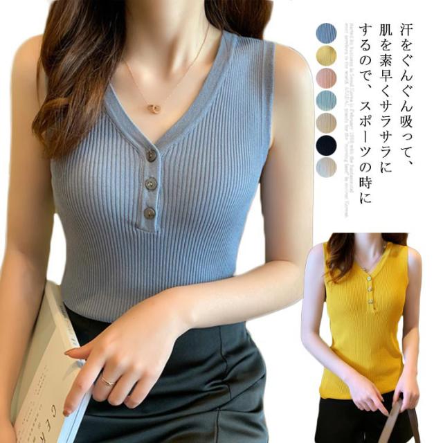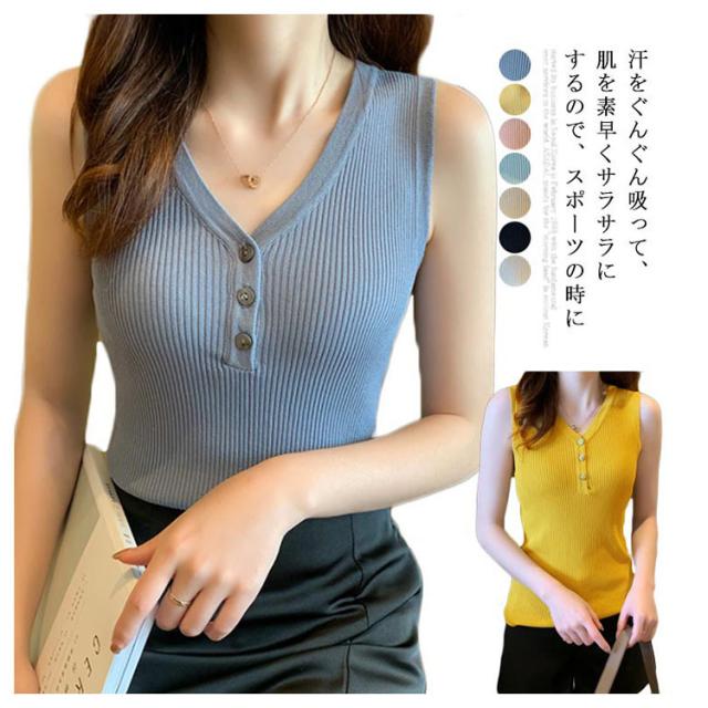 リブ キャミソール リブインナー タンクトップ レディース 送料無料 Vネック重ね着 インナー 下着 軽い リブ ボタン かわいい 透けない 見えない