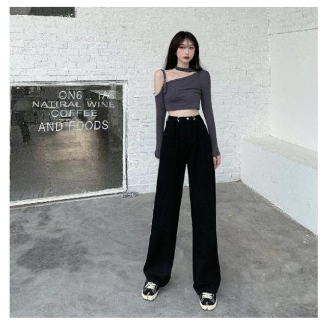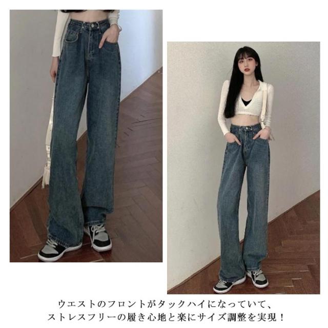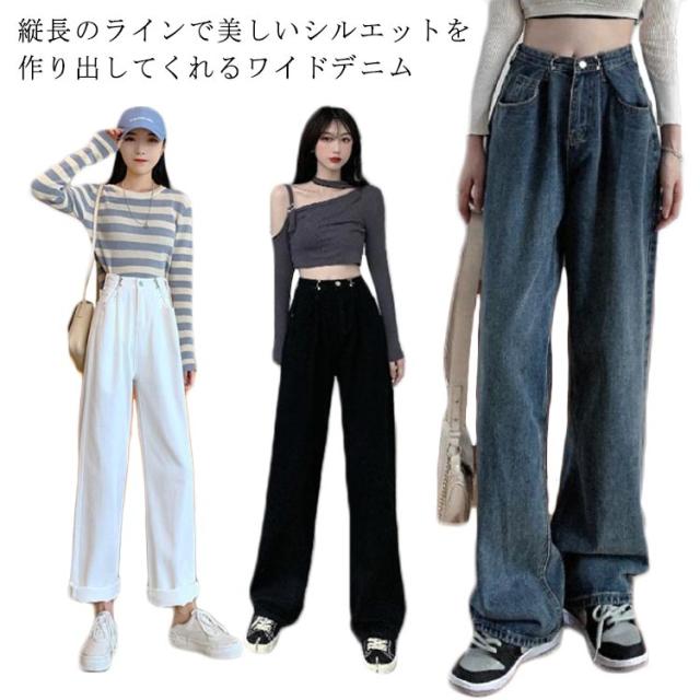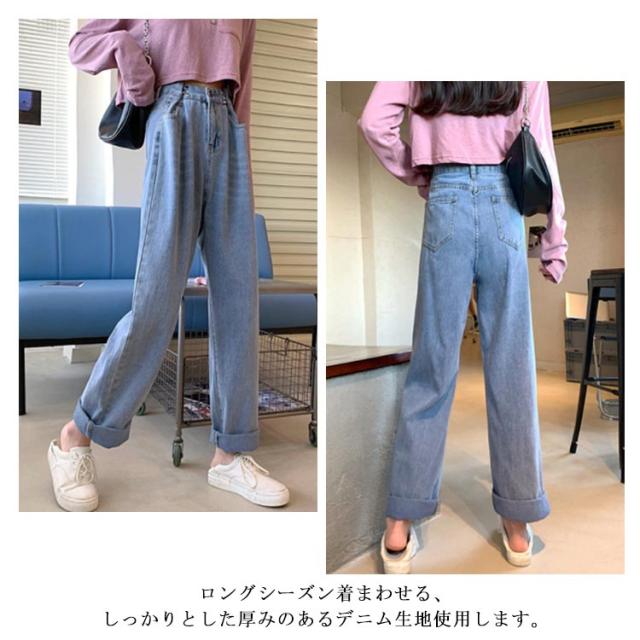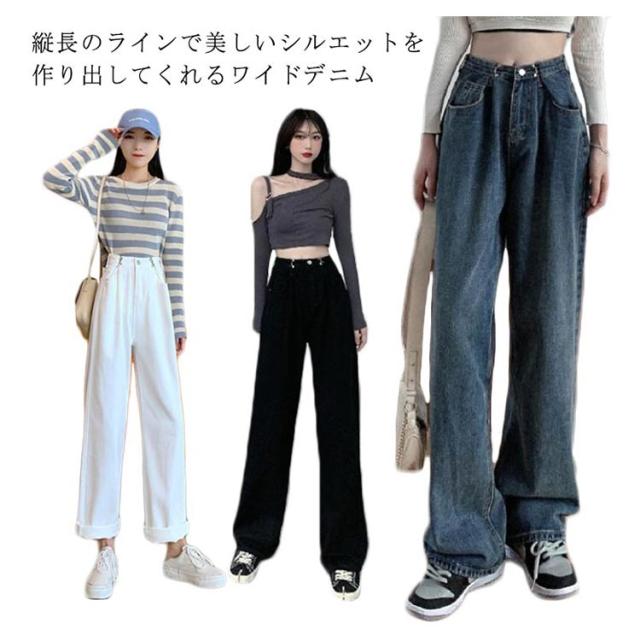 送料無料 デニムワイドパンツ レディース ウエストタックハイ レディース ボトムス デニム ロング丈 ゆったり ロングシーズン ワイドパンツ サルエルパンツ カジュアル パンツ ゆるカジ
