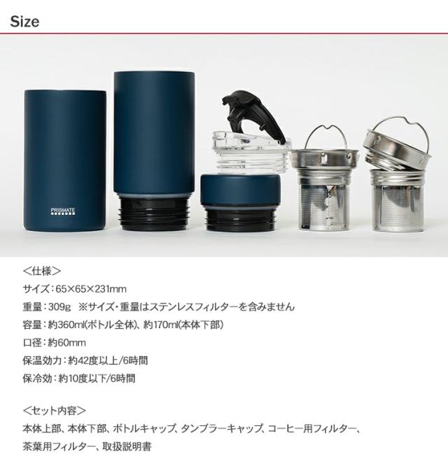 PRISMATE プリズメイト 水筒 ステンレスボトル 2種のフィルターとタンブラーキャップ付 PR-SK041-SV マグ