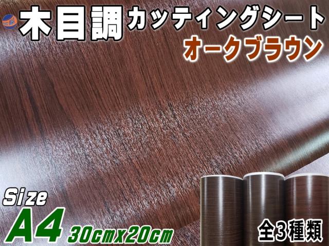 木目調シート A4サイズ (オークブラウン) 【メール便 送料無料】【商品一覧】 30cm×20cm 防水 リメイクシート 切り売り ステッカー 剥がせる壁紙シート 木目 キッチン 粘着シート インテリア リフォーム 切売 カッティング可能シート