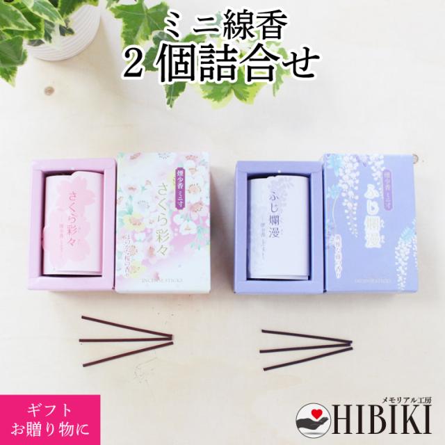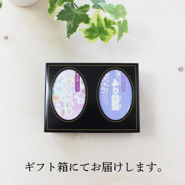 ミニ線香さくら彩々とミニ線香ふじ爛漫の2点詰合せ。専用箱入りなので、贈答品におすすめです。