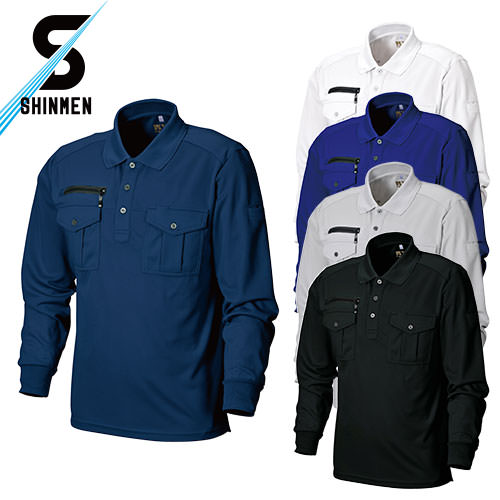 作業服 ポロシャツ 長袖 シンメン ダブルポケット長袖ポロシャツ 7880 作業着 春夏