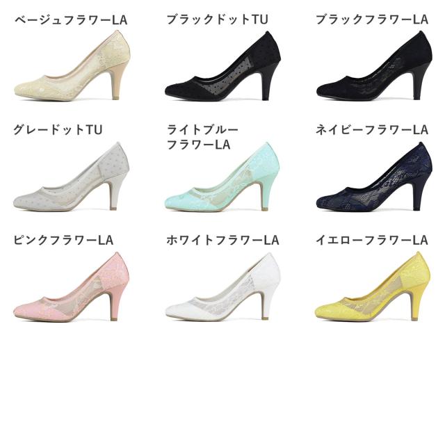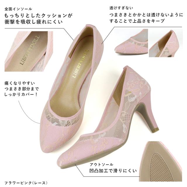 レディース パンプス 痛くない 黒 ハイヒール 8cm 低反発インソール チュール レース ブラック グレー ドット 走れる リバティードール No.5314