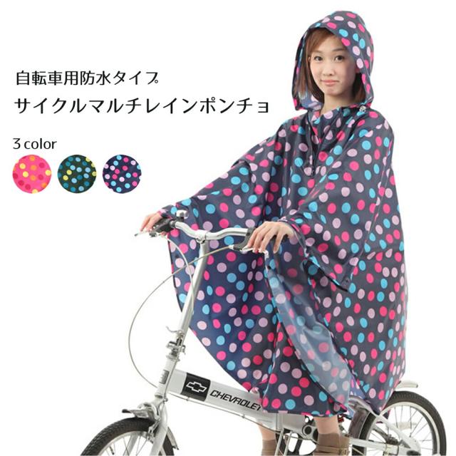レインポンチョ 自転車 サイクル メンズ レディース 男女兼用 防水 ジッパー レインコート レインウェア おしゃれ かわいい マルチドット 入学 通勤 通学 フェス 合羽 雨具 収納袋 送料無料 06003070
