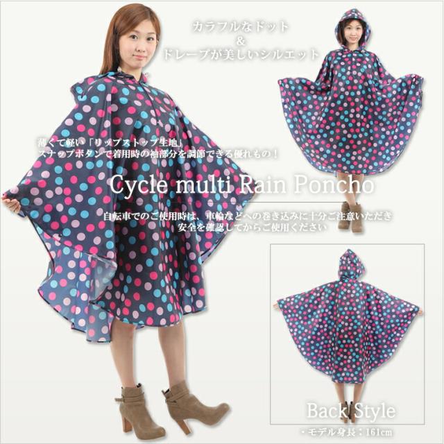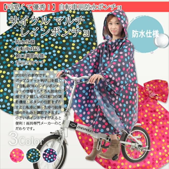 防水サイクルマルチドットレインポンチョ