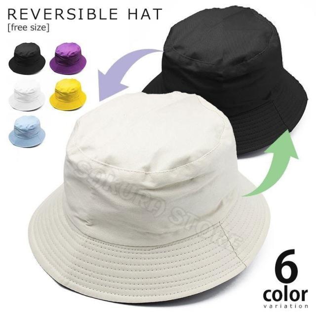 ハット リバーシブル 帽子 レディース メンズ バケットハット おしゃれ かわいい 可愛い 黒 ブラック イエロー ブルー 紫 パープル 白 ホワイト 運動会 ママ 紫外線 紫外線対策 折りたたみ 夏 夏用 日よけ帽子 日よけ