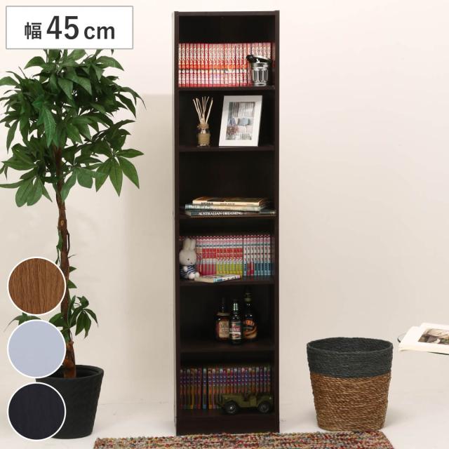 書棚 幅90cm 6段 大容量 可動棚4枚 多目的ラック ( 本棚 オープンラック シェルフ コミックラック 薄型 大容量 収納棚 省スペース 壁面収納 収納 漫画収納 コミック収納 ホワイト ブラウン ブラック 木目 おしゃれ )