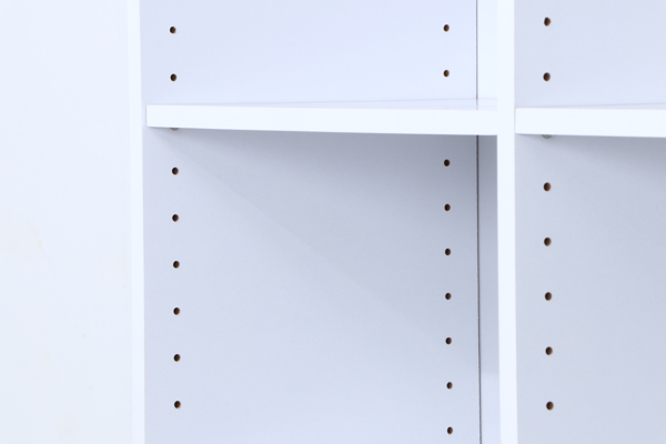 真ん中の固定棚以外は、可動式の棚となっています。ピッチは3.2cm間隔で空いているので、収納物に合わせて細かい高さ調節が可能です。