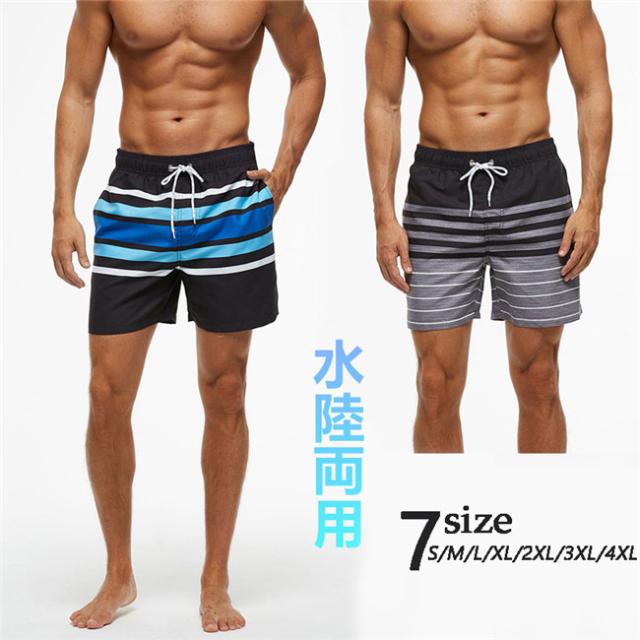 水着 メンズ サーフパンツ 速乾 ショートパンツ ショーパン 短パン 水陸両用 ボーダー ブルー グレー 黒 膝上 ビーチパンツ 大きいサイズ 3XL 4XL 海パン スイムパンツ リゾート 海 プール 行楽 レジャー 旅行 サーフィン