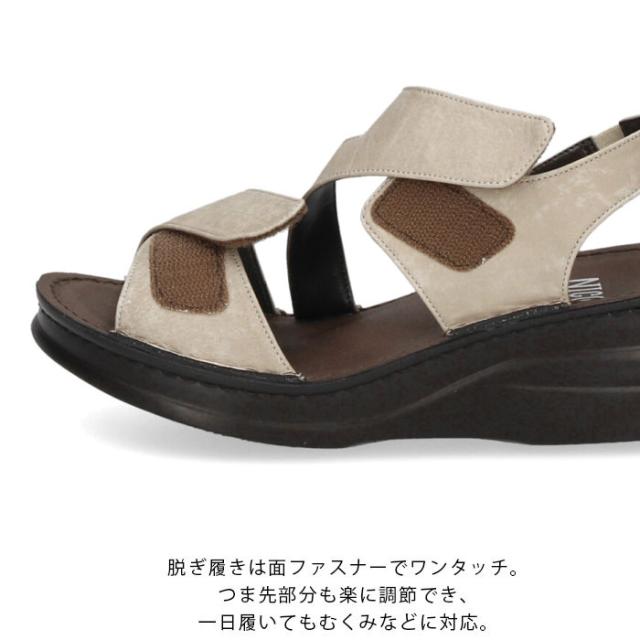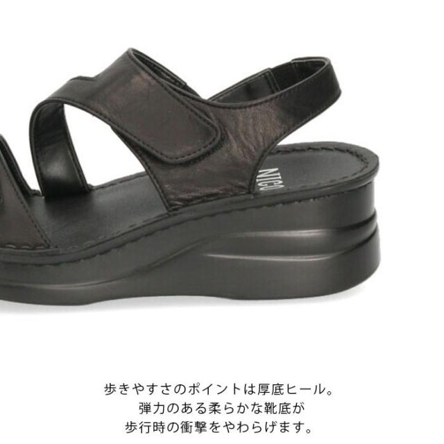 サンダル レディース 厚底 ウエッジソール ストラップ コンフォート NICO ニコ 41711 黒 ブラック ライトグレー オレンジ カジュアル 本革 日本製