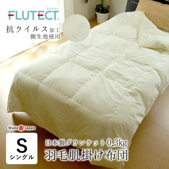 日本製 抗ウイルス加工フルテクト使用 羽毛肌掛け布団 シングルロング 0.3kg ダウンケット ホワイトグースダウン 2180