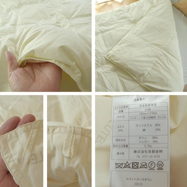 日本製羽毛肌掛け布団 シングルロングサイズ 150×210 ホワイトグースダウン0.3kg