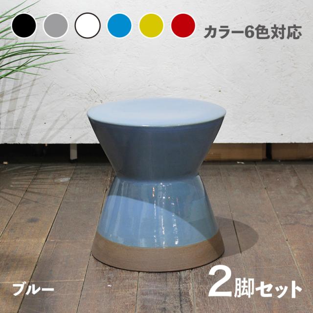 CL20-BL カラフル 陶器 スツール 2脚セット ブラック ホワイト グレー ブルー レッド イエロー 6色展開 サイズ 幅30×奥行き30×高さ31cm 完成品 フラワーベース 観葉植物台 サイドテーブル グリーンスタンドナイトテーブル ミニテーブル