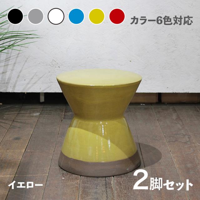 CL20-YE カラフル 陶器 スツール 2脚セット ブラック ホワイト グレー ブルー レッド イエロー 6色展開 サイズ 幅30×奥行き30×高さ31cm 完成品 フラワーベース 観葉植物台 サイドテーブル グリーンスタンドナイトテーブル ミニテーブル