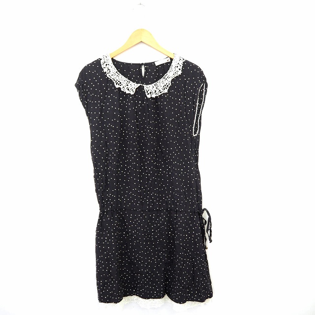 【中古】アースミュージック&エコロジー EARTH MUSIC & ECOLOGY ワンピース 水玉 ドット レース 丸首 ロング