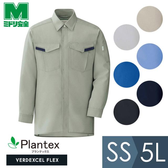 ミドリ安全 作業服 通年 ベルデクセルフレックス プランテックス 長袖シャツ VES2370シリーズ 7カラー SS〜5L