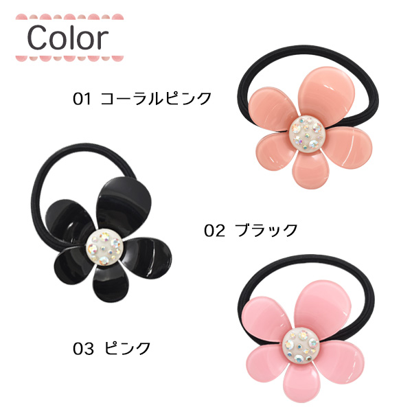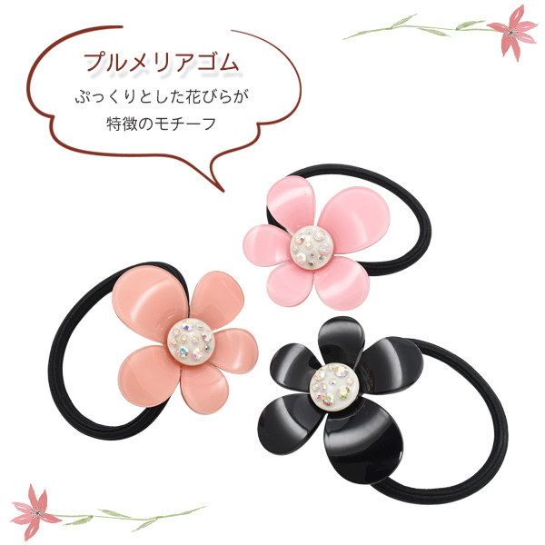 ヘアアクセサリー ヘアゴム プルメリア 全3色 立体的 ぷっくり 花びら 華やか シンプル 上品 簡単 結ぶだけ 一つ結び かわいい 華やか まとめ髪 髪飾り レディース 女性 女子 かわいい オケージョン 式典 入園 入学式 卒園 卒業 参観日 普段使い