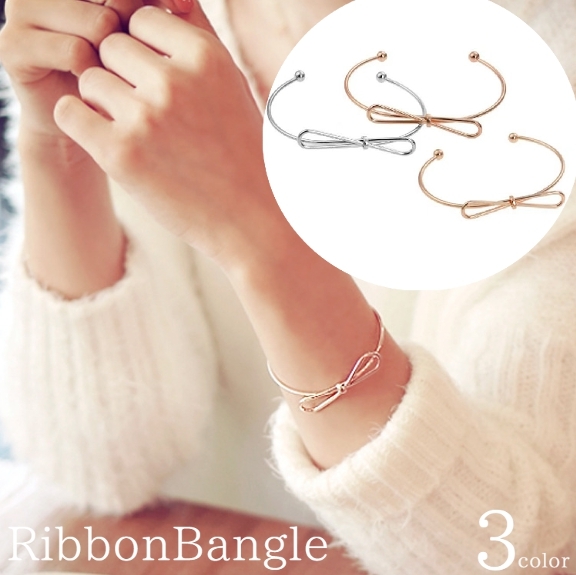 ブレスレット バングル アクセサリー レディース 女性用 ファッション小物 オープンタイプ C型 リボン 蝶々結び 上品 清楚