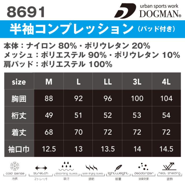 8691 DOGMAN 接触冷感 吸汗速乾 肩パッド付き コンプレッション アンダーウェア インナー おしゃれ かっこいい