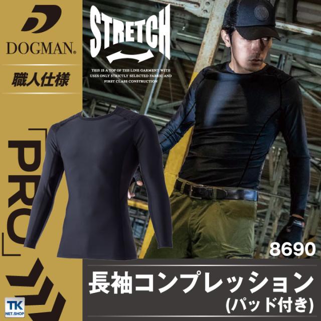 長袖コンプレッション 春夏 インナー DOGMAN ストレッチ 吸汗速乾 接触冷感 消臭テープ 作業服 現場服 ワークウェア chusan 長袖 インナーシャツ ネコポス cs-8690
