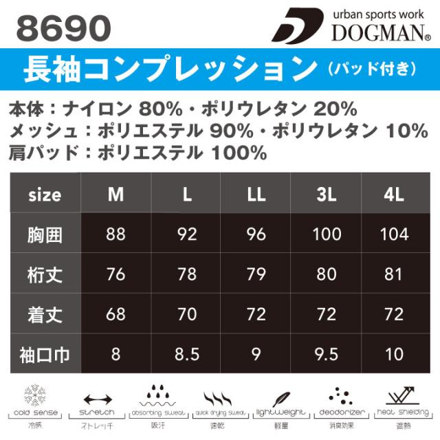 8690 DOGMAN 接触冷感 吸汗速乾 肩パッド付き コンプレッション アンダーウェア インナー おしゃれ かっこいい