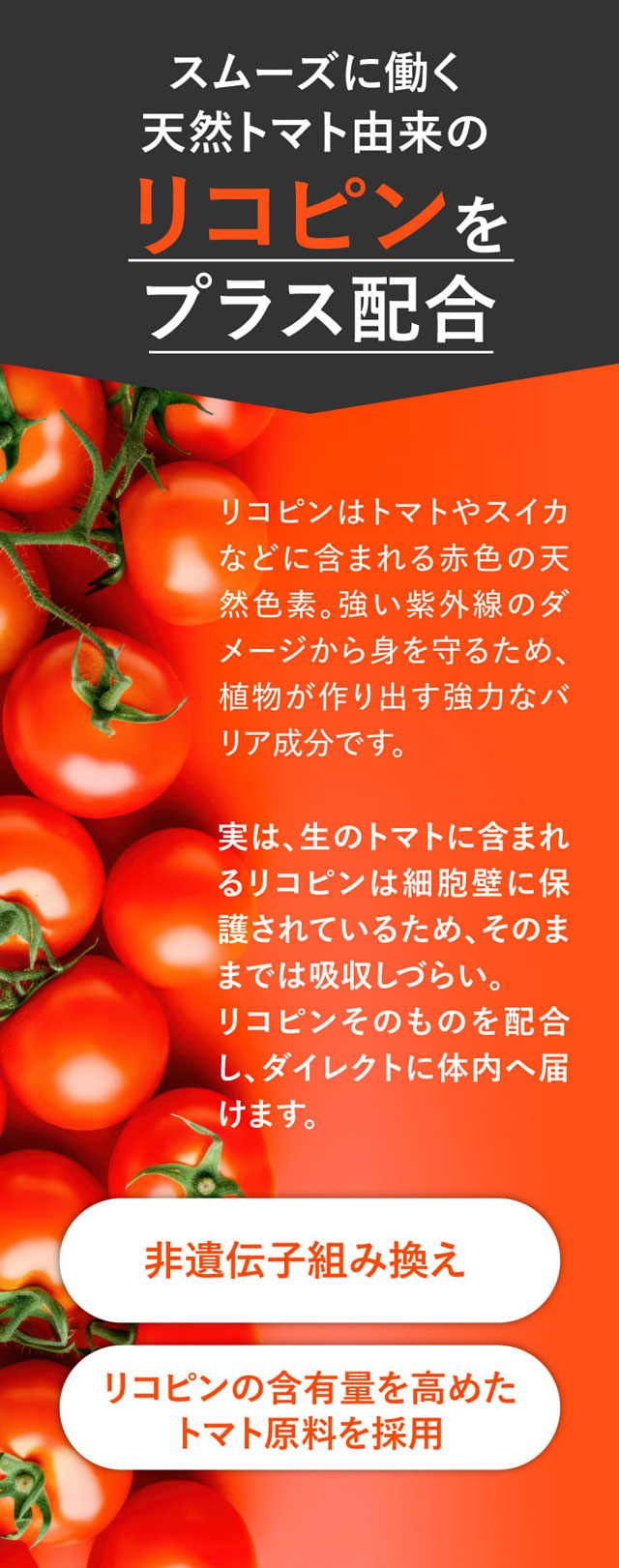 1日目安量1粒のシンプルケアで手軽にできるデイリー習慣。リコピンを追加し、リニューアルいたしました。