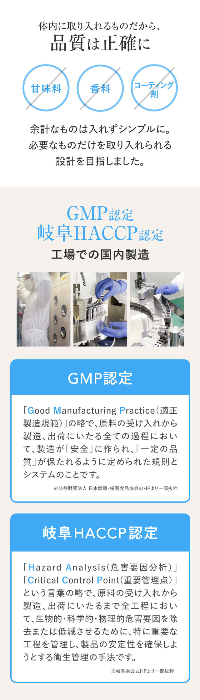 | フリー処方 | 甘味料/香料/コーティング剤 フリー |
