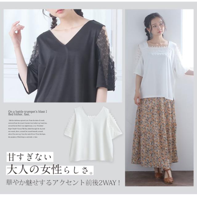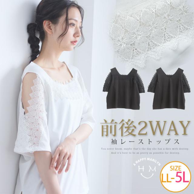 新作 大きいサイズ レディース トップス | エレガントに着痩せ叶える 前後2way 袖レース トップス [350784] LL 3L 4L 5L1