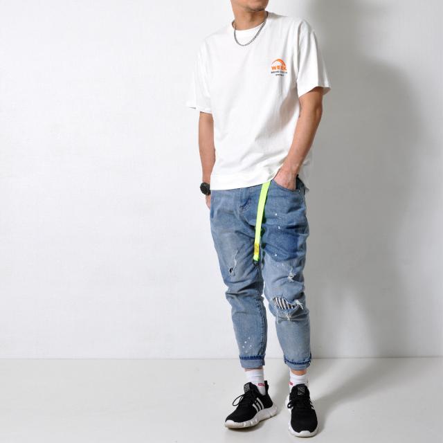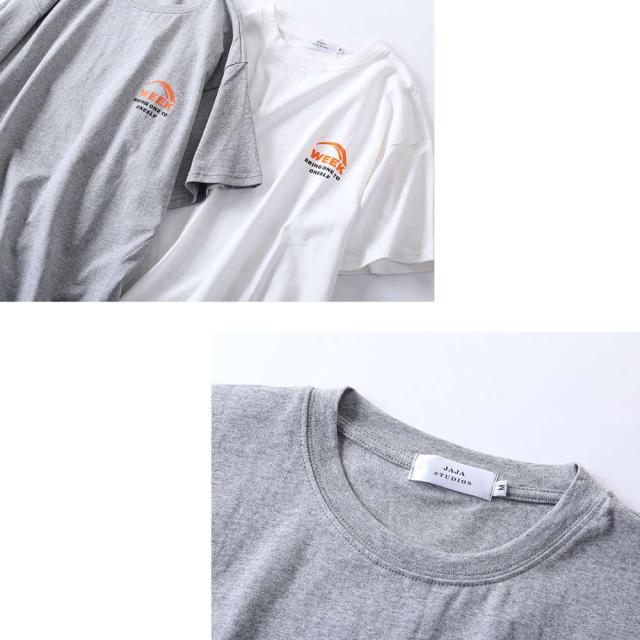 英字のシンプルなロゴが背中に入った半袖Tシャツ