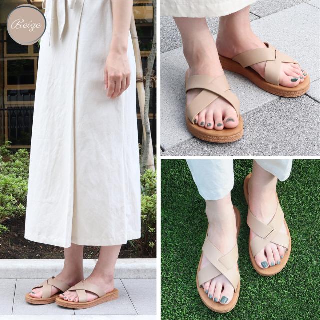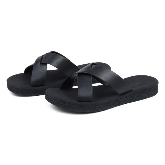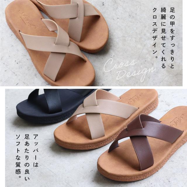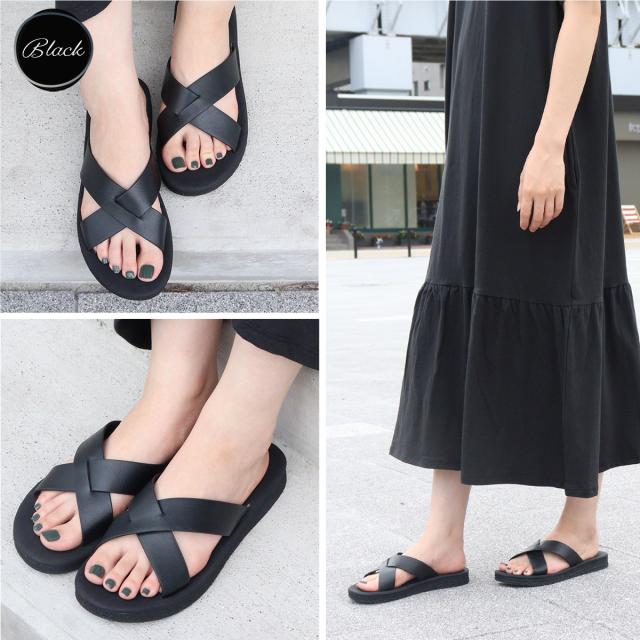 サンダル クロスサンダル ビーサン ビーチサンダル シンプル ぺたんこ おしゃれ 大人 リゾート 歩きやすい 靴 ファッション 1.8cmヒール No.3568 22.5cm〜24.5cm 黒 ブラック AAA+ Feminine