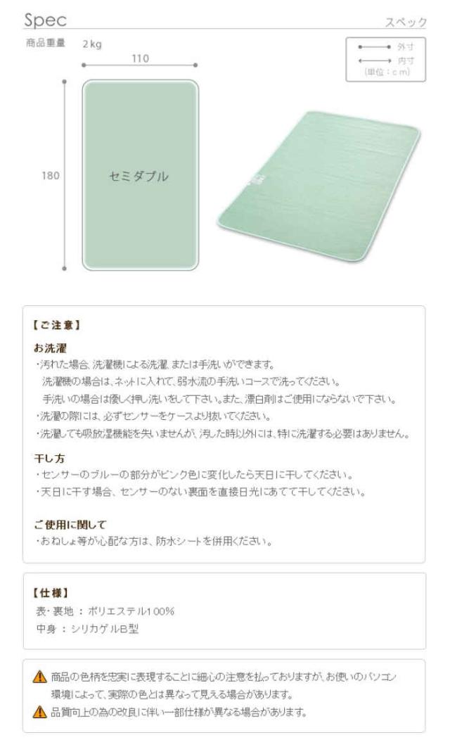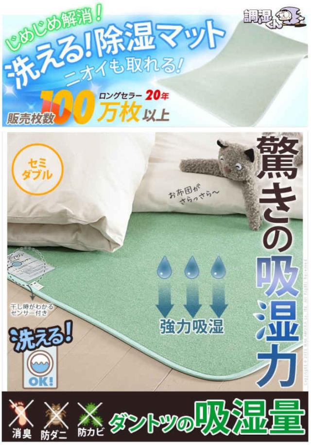 湿度調整マット 〔調湿くん〕 セミダブル 110×180cmです。高い吸湿力。干し時がわかる吸湿センサー付き。丸洗い可能。消臭、防ダニ・防カビ効果有り。