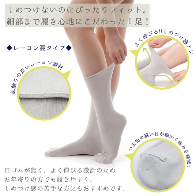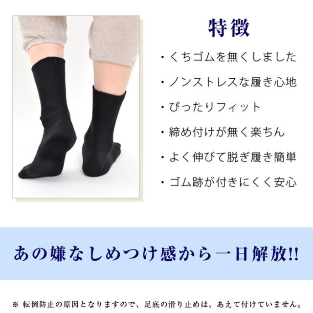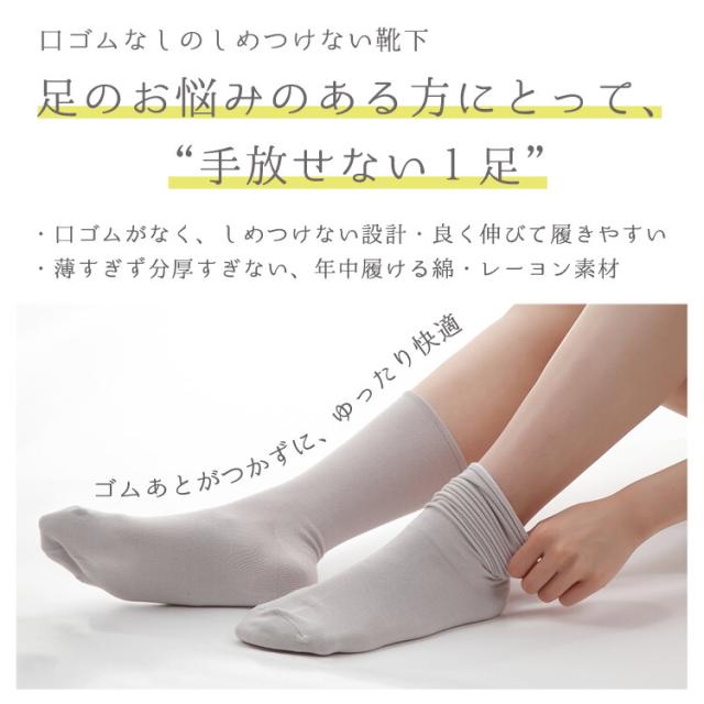 ・くちゴムがなく締め付けないので、むくんだ足でも、ゴム跡がつきにくくて安心!