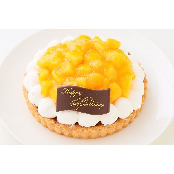 アップルマンゴーをたっぷりとデコレーションしたバースデーにおすすめのタルトです。アーモンドクリーム生地をシュクレ生地と合わせてじっくり香ばしく焼き上げたサクサクのダマンドシュクレ生地にマンゴーピューレで作った風味豊かなマンゴージュレを生地にしみこませ自家製のカスタードとホイップクリームで作ったクレームドパティシェールをたっぷりタルト生地に載せ完熟したアップルマンゴーを贅沢にデコレーション!マンゴーの周りのホイップクリームは北海道産純生ブレンドのホイップクリームを使用しています。マンゴー好きな大人のバースデープレゼントにご利用ください。5号サイズは3〜4人分サイズになります。