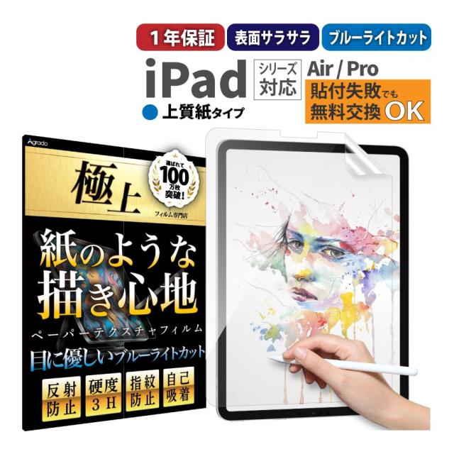 2025年最新型対応 10.9-12.9インチ iPad Pro / Air 各種サイズ さらさら紙のような描き心地 ペーパーライクフィルム ブルーライトカット かんたん 安心 透明 非光沢 保護フィルム タブレットフィルム 保証 アイパッド おまけ付き 防水ケース ポイント消化