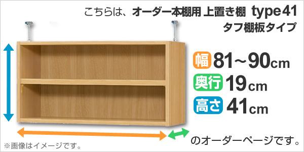 専用 上置き棚 タフ棚板 type41 オーダー本棚 奥行19cm 幅81-90cm用 ( オーダーメイド 天井つっぱり 薄型 スリム 本棚 収納棚 セミオーダー )