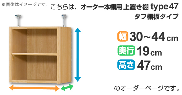 専用 上置き棚 タフ棚板 type47 オーダー本棚 奥行19cm 幅30-44cm用 ( オーダーメイド 天井つっぱり 薄型 スリム 本棚 収納棚 セミオーダー )